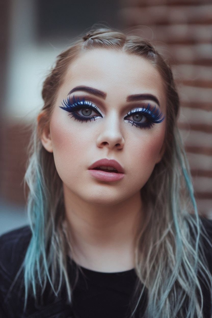 Want to make your eyes pop? Try electric blue lashes. This bold look adds instant drama and flair to any makeup style. You can achieve it with vibrant blue mascara or by applying false lashes in a striking azure shade.