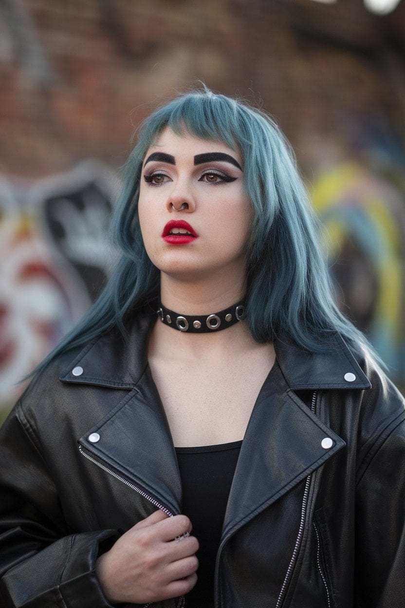 Bold brows frame your face, so keep them thick and defined. For lips, dark colors reign supreme. Try deep reds, purples, or even black for maximum impact. Don’t forget to add some attitude with facial piercings or temporary tattoos.