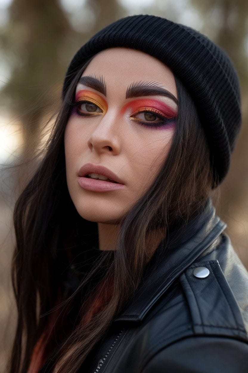 Sunset eyes are a dazzling makeup look inspired by the warm hues of a setting sun. This style blends oranges, pinks, purples, and golds to create a striking effect on your eyelids.