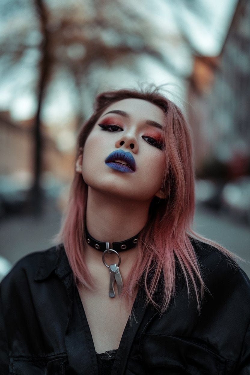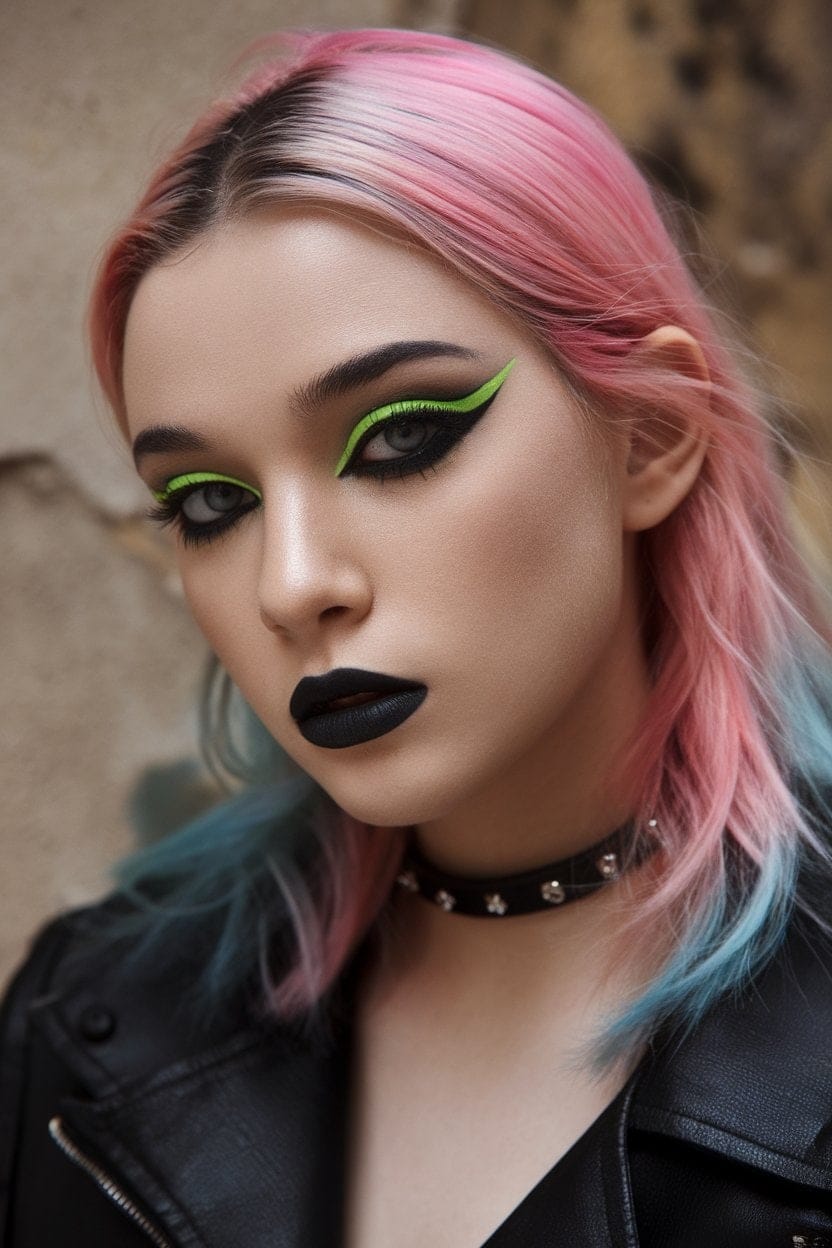 This eye-catching style pairs well with minimal face makeup and a nude lip. It lets your eyes become the focal point of your look. You can also coordinate the colors with your outfit for a cohesive alternative aesthetic.