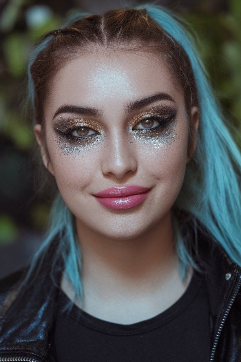 For extra sparkle, dab on some loose glitter with a small brush. Don’t forget to highlight your cheekbones and brow bones with a celestial-inspired shimmer. This ethereal style works great for festivals, parties, or anytime you want to feel out of this world.