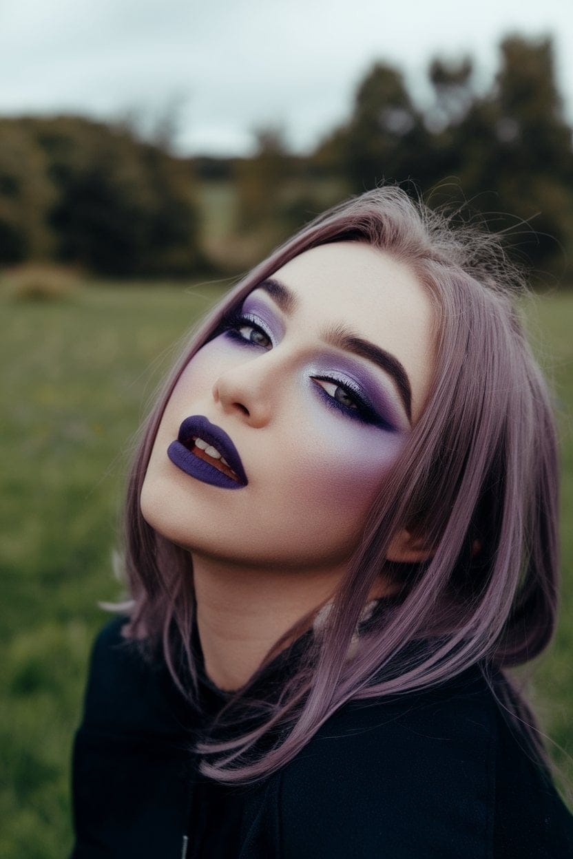 Lavender Dreamscape offers a whimsical twist on traditional makeup. This ethereal look features soft lavender eyeshadow as its centerpiece. You can apply a frosty lavender shade across your eyelids for a dreamy effect.