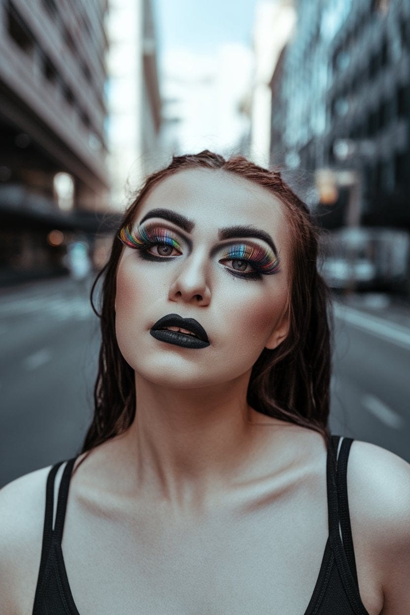 Remember to balance the rest of your makeup. Keep lips and cheeks understated to avoid clashing with your eye-catching lashes. This look works especially well for nights out or creative events where you can showcase your unique style.