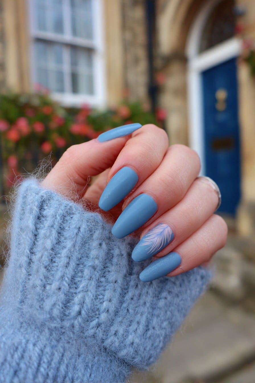 Matte dusty blue gives you a muted, soft base, there’s something calming about it, honestly. The matte finish tones things down so nothing feels too shiny or fussy.