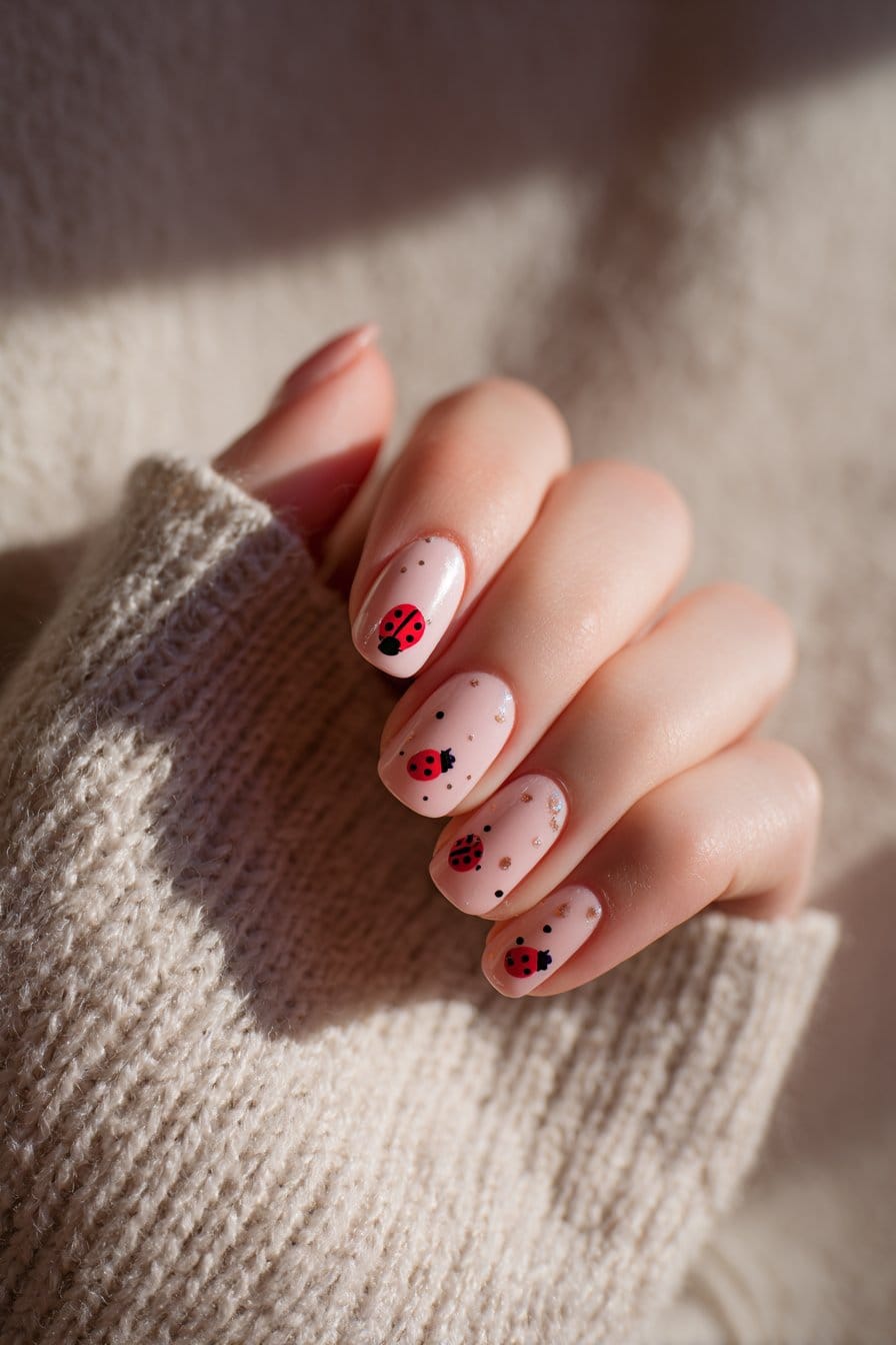 Add a tiny ladybug or two and bam, the whole thing feels different. Those little pops of red and black are just enough to make the pastel base feel lively.