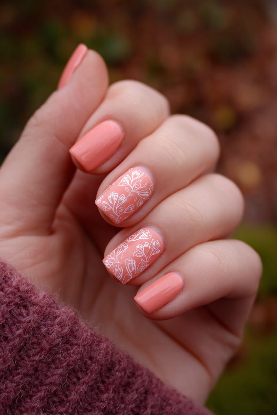 If you’re into low-maintenance styles, this is a solid pick. Coral hides chips better than harsher colors, and the floral lines stay fresh.
