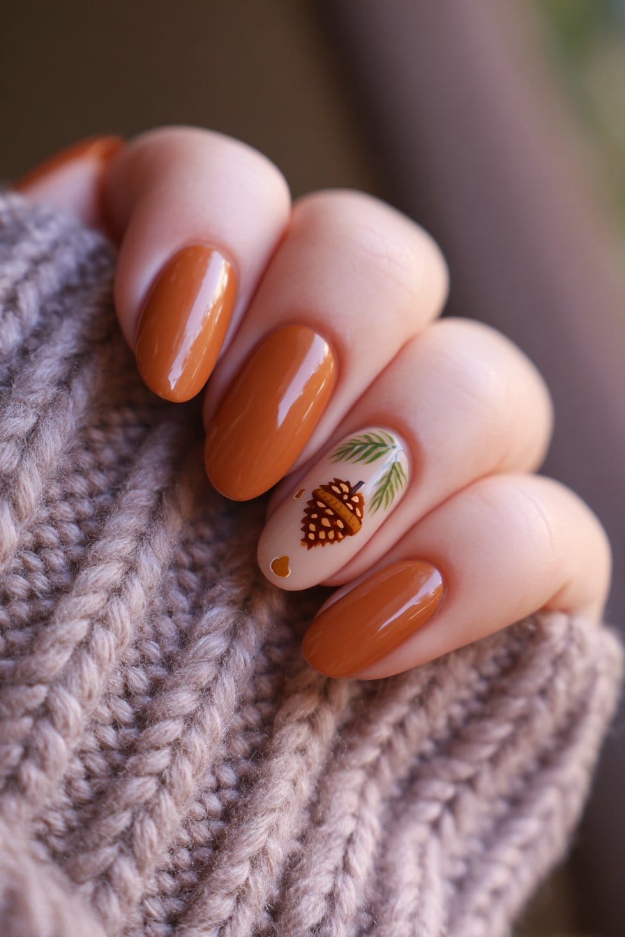 Add tiny acorn and pinecone details for a subtle cottagecore nod. The small shapes are playful but don’t overwhelm the caramel.