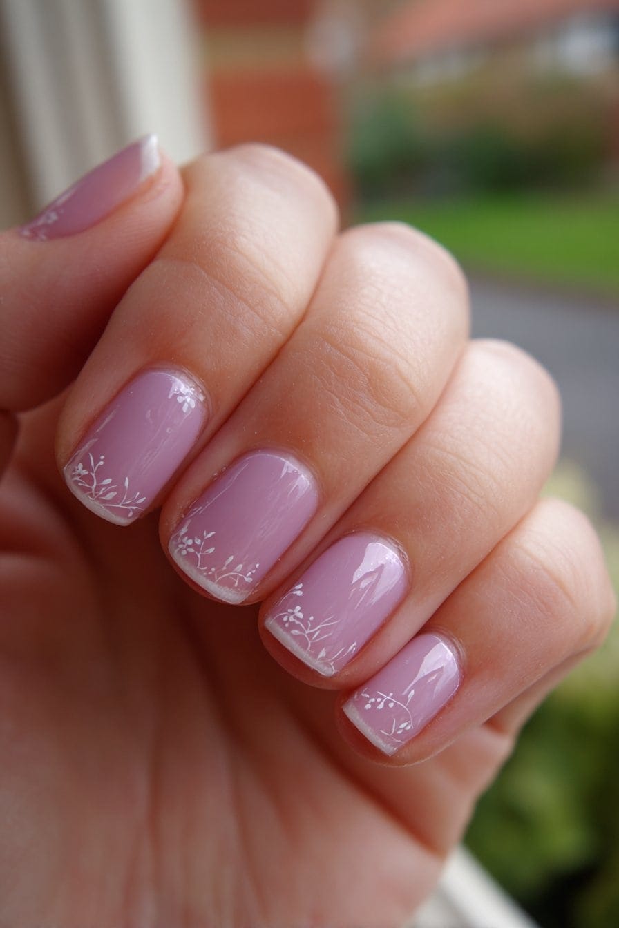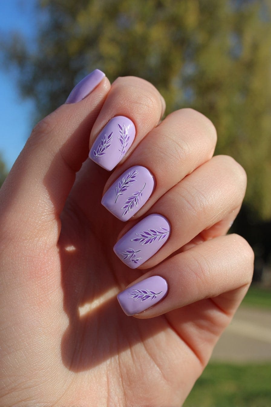 Pastel lavender polish gives you a clean, soft base. The color has that cottagecore vibe but stays subtle.