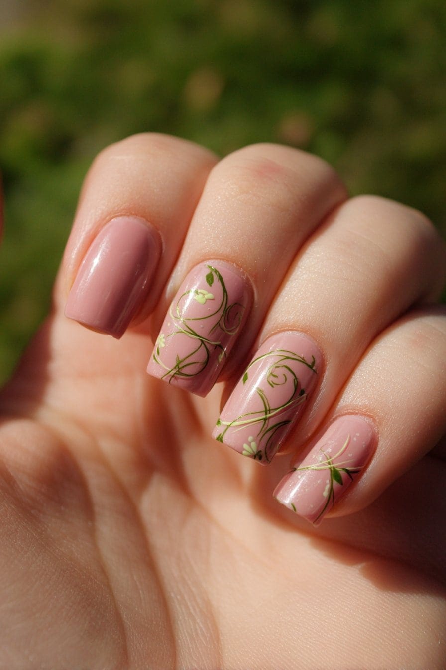 Add thin vine swirls in a darker green or white. The lines make your nails look a little wild and natural.
