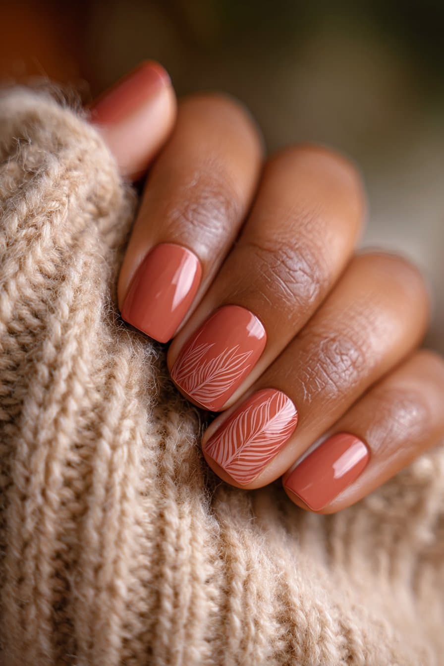 A soft coral base can be subtle if you pair it with thin floral sketches. The muted tone is calm, and the line art adds just enough detail.