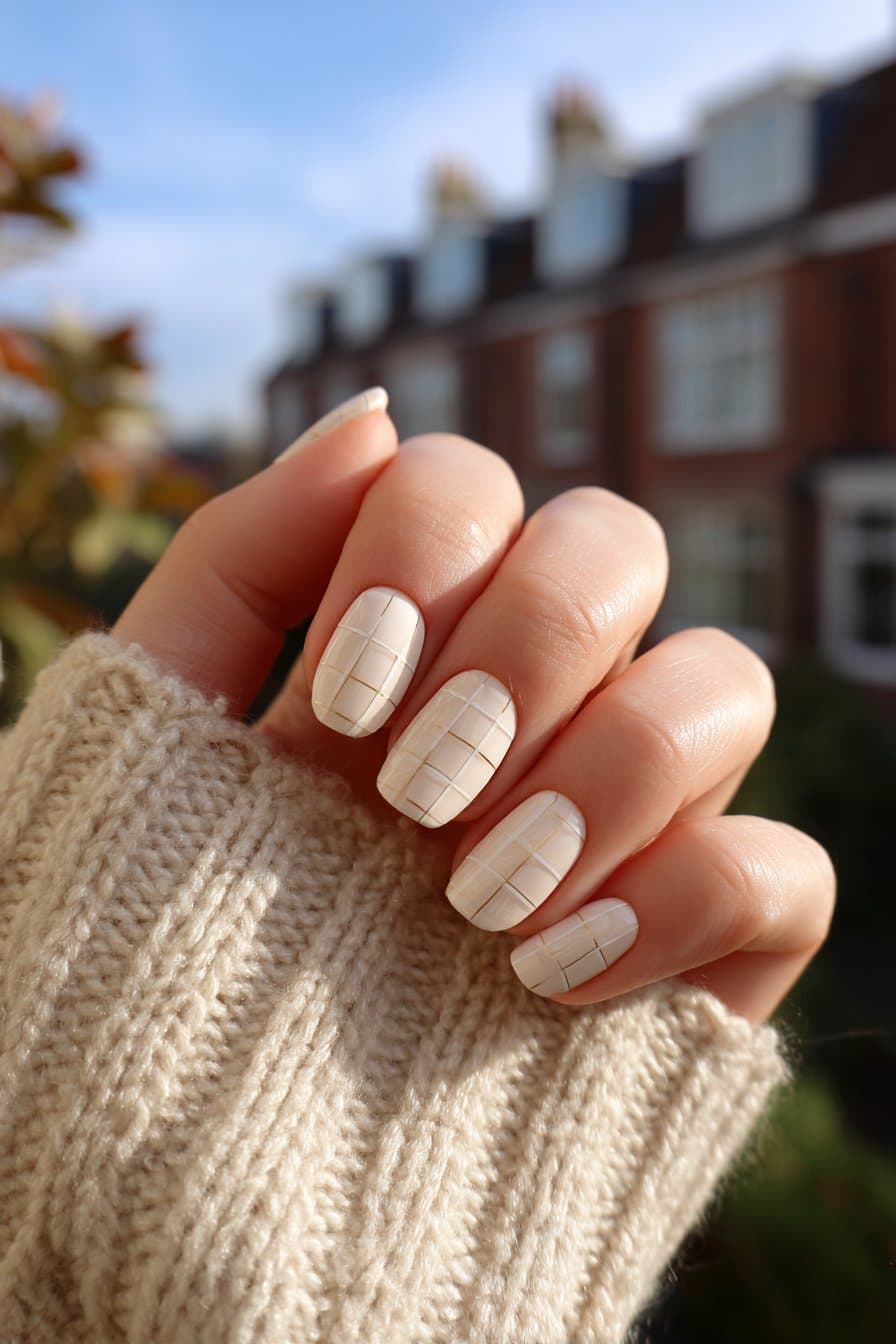 Paint a faint plaid or gingham pattern in muted tones for a low-key twist. The contrast is soft, so it’s easy to wear whenever you feel like it.