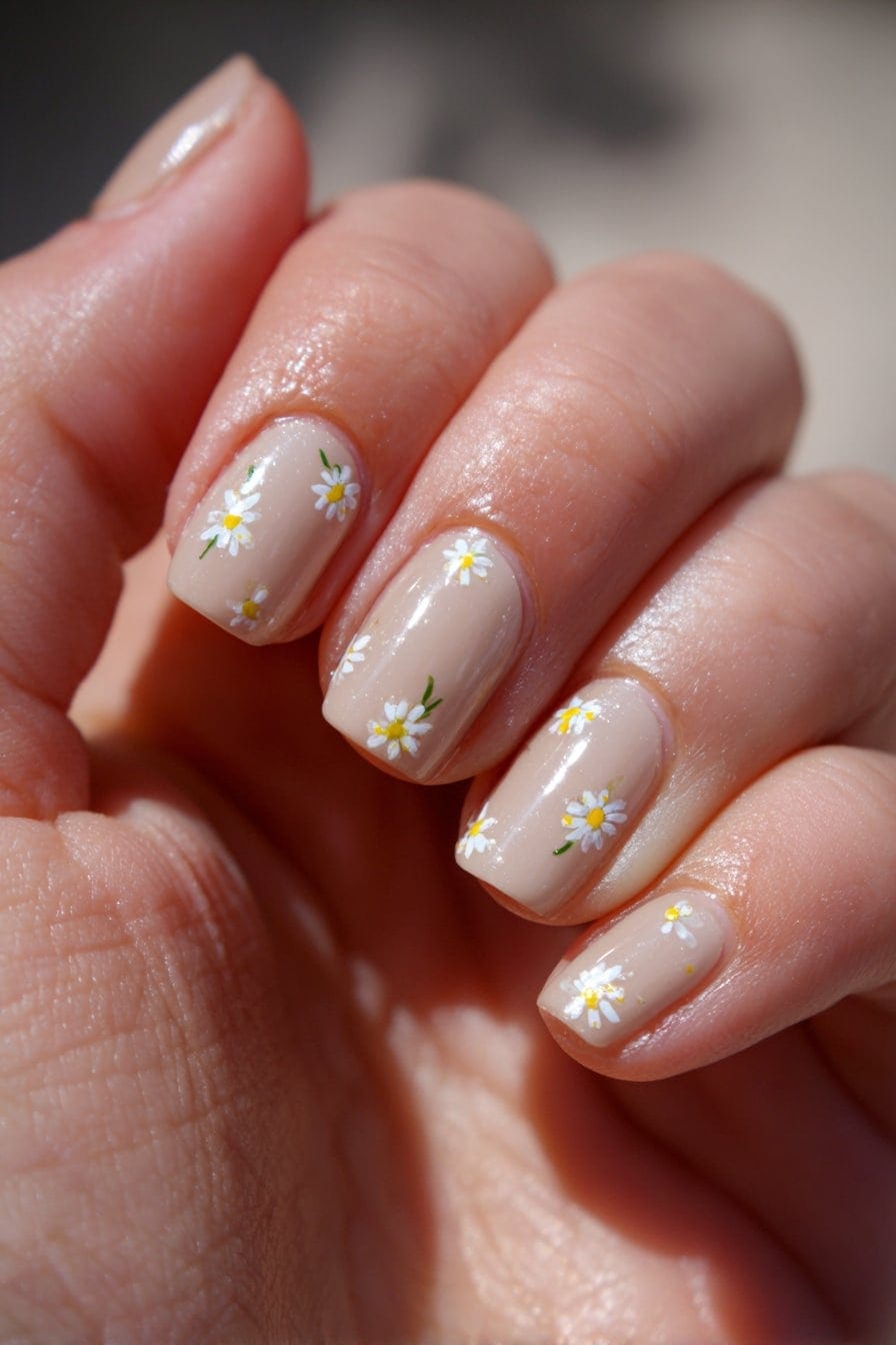 Scatter tiny daisy chains across a few nails, not all of them. That keeps things playful and not overdone.