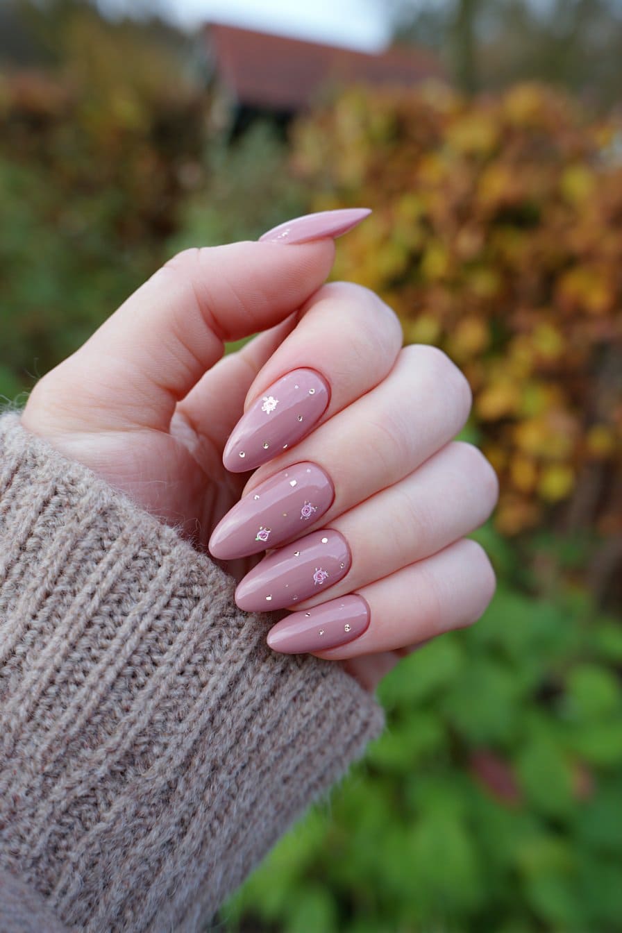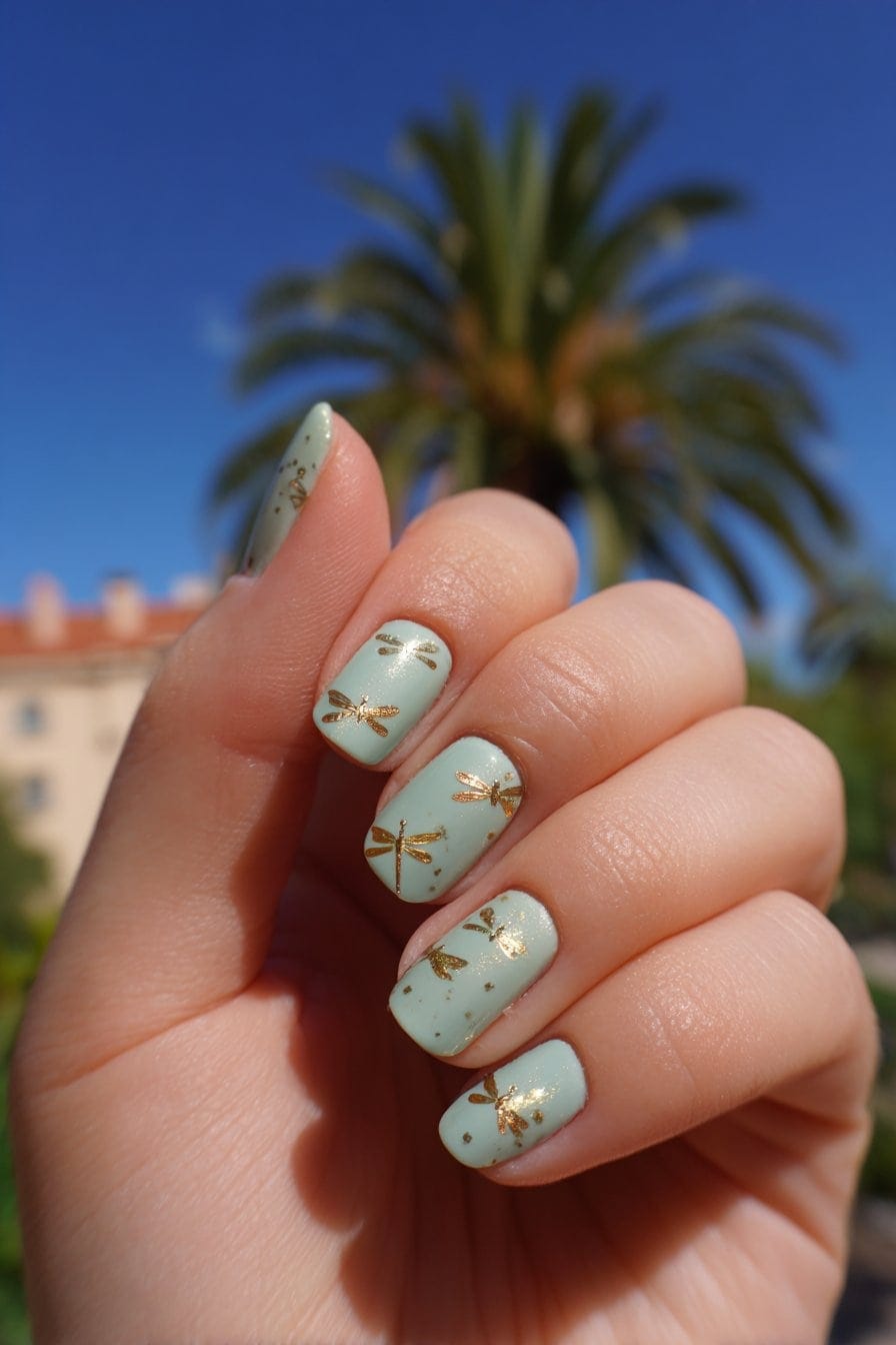 Start with a soft matte pastel shade, it’s like a blank canvas for tiny details. Then, add pressed flower decals: little blossoms that keep things natural but stop short of being too precious.