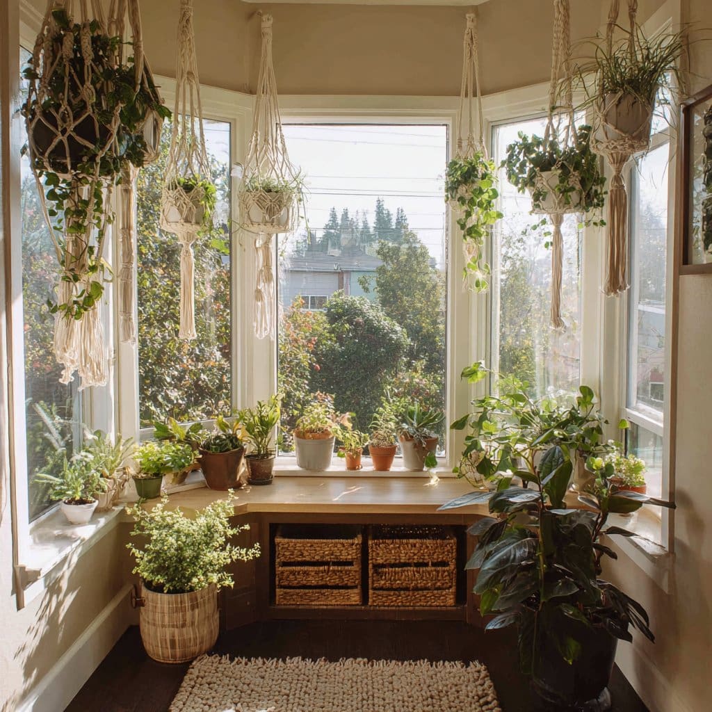 Take a dull corner and suddenly it feels alive with a macramé plant hanger. Those cords add some texture, and the plant itself brings in a shot of color and a softer shape. It’s honestly one of the easiest ways to fill up dead space without crowding the floor.