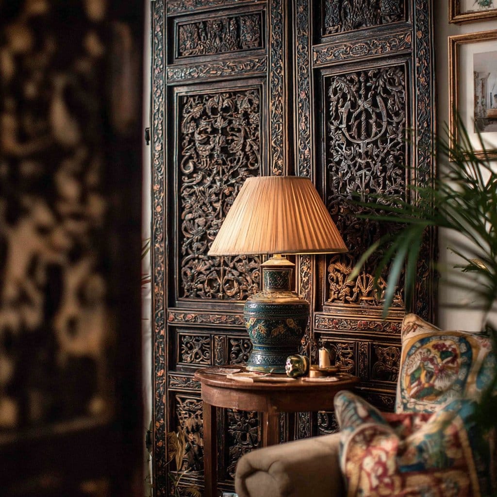 Add a carved wooden screen and you get instant texture and detail. The patterns in the wood bring character while still letting light sneak through.