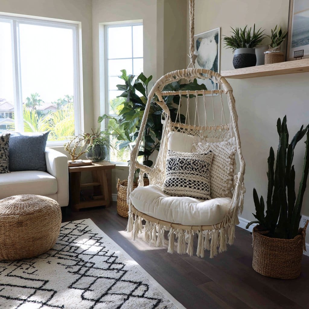 Hang a hammock chair in your living room or bedroom and the whole mood changes. It’s casual, a bit unexpected, and honestly more fun than another regular armchair.