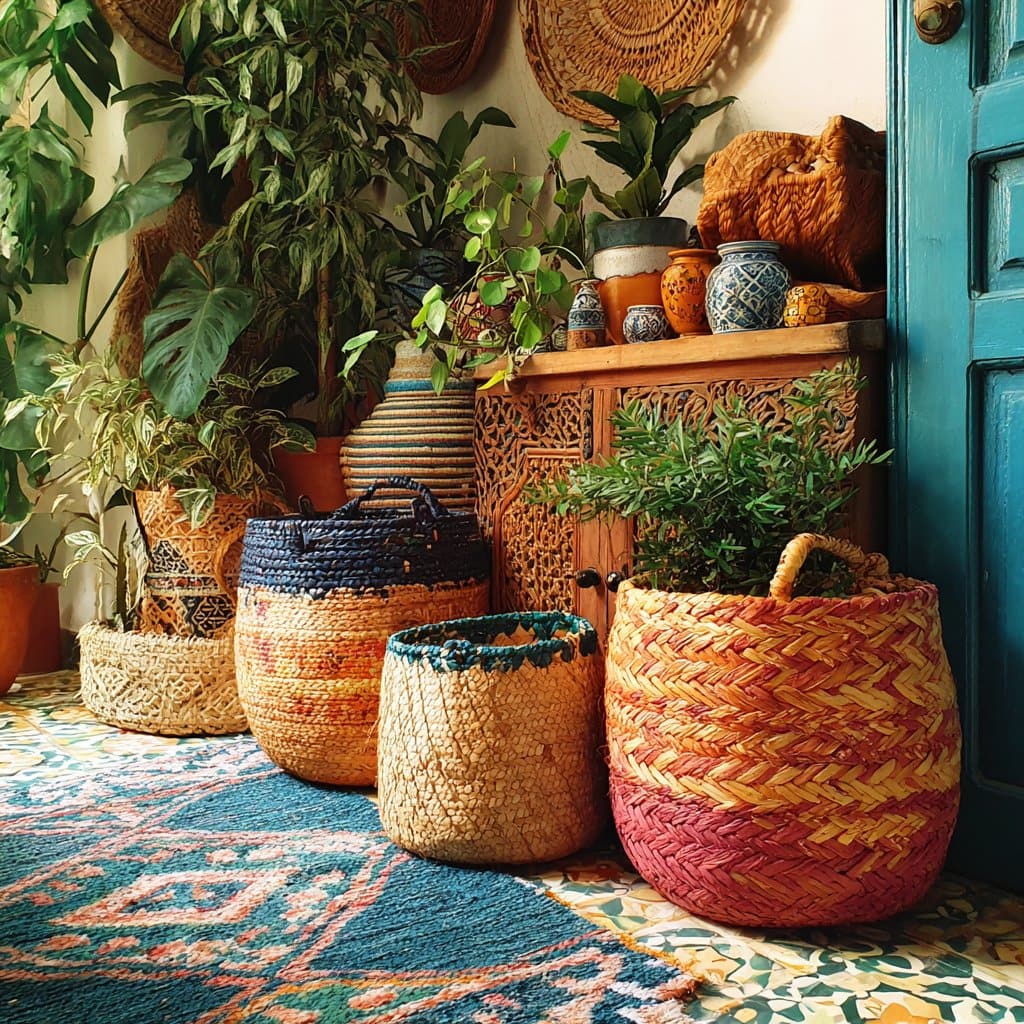 Toss a few plants into woven baskets and you’ve got that laid-back boho vibe in seconds. The mix of greenery with natural fibers feels casual but still pulled together.