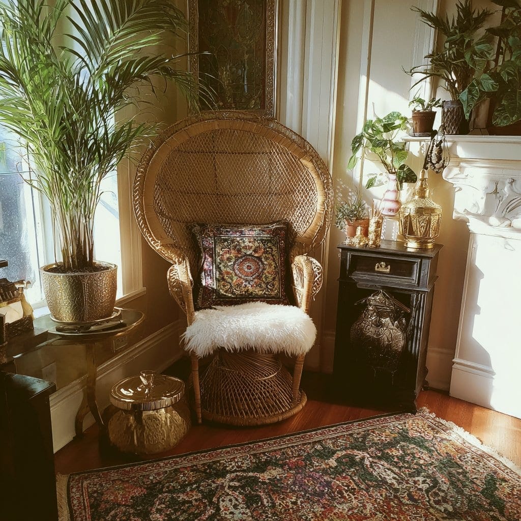 Drop a peacock chair into your space and you’ve got instant bold boho energy. The oversized back and woven details just have way more personality than regular chairs.