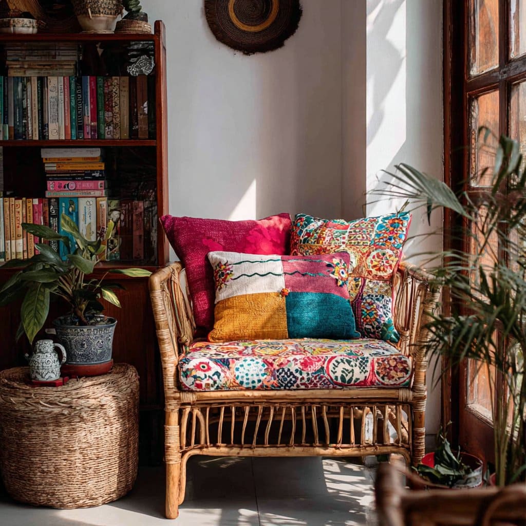 Rattan furniture brings in texture without weighing the room down. The woven look just feels chill, and it’s a great canvas for bold accents.