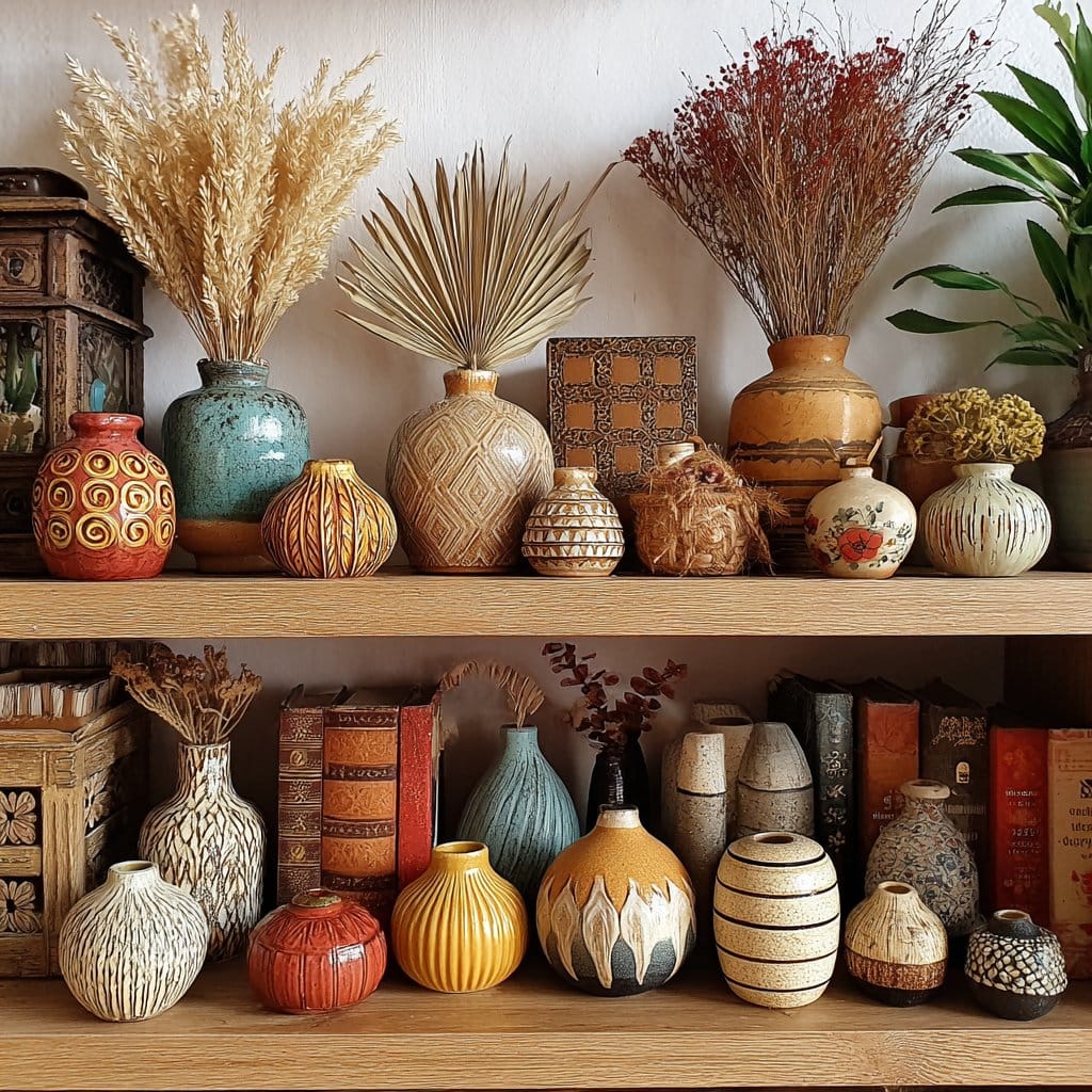 If you’ve got a hand-painted piece or something vintage, toss that in too. Suddenly, your shelf or table has way more personality, and you didn’t even have to try that hard.
