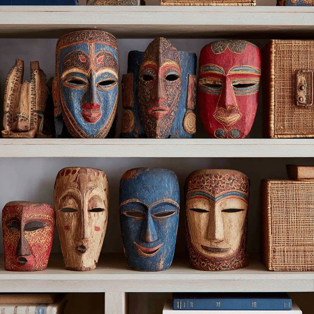 You don’t need a huge collection, just a few unusual masks can totally shift the vibe in a room.