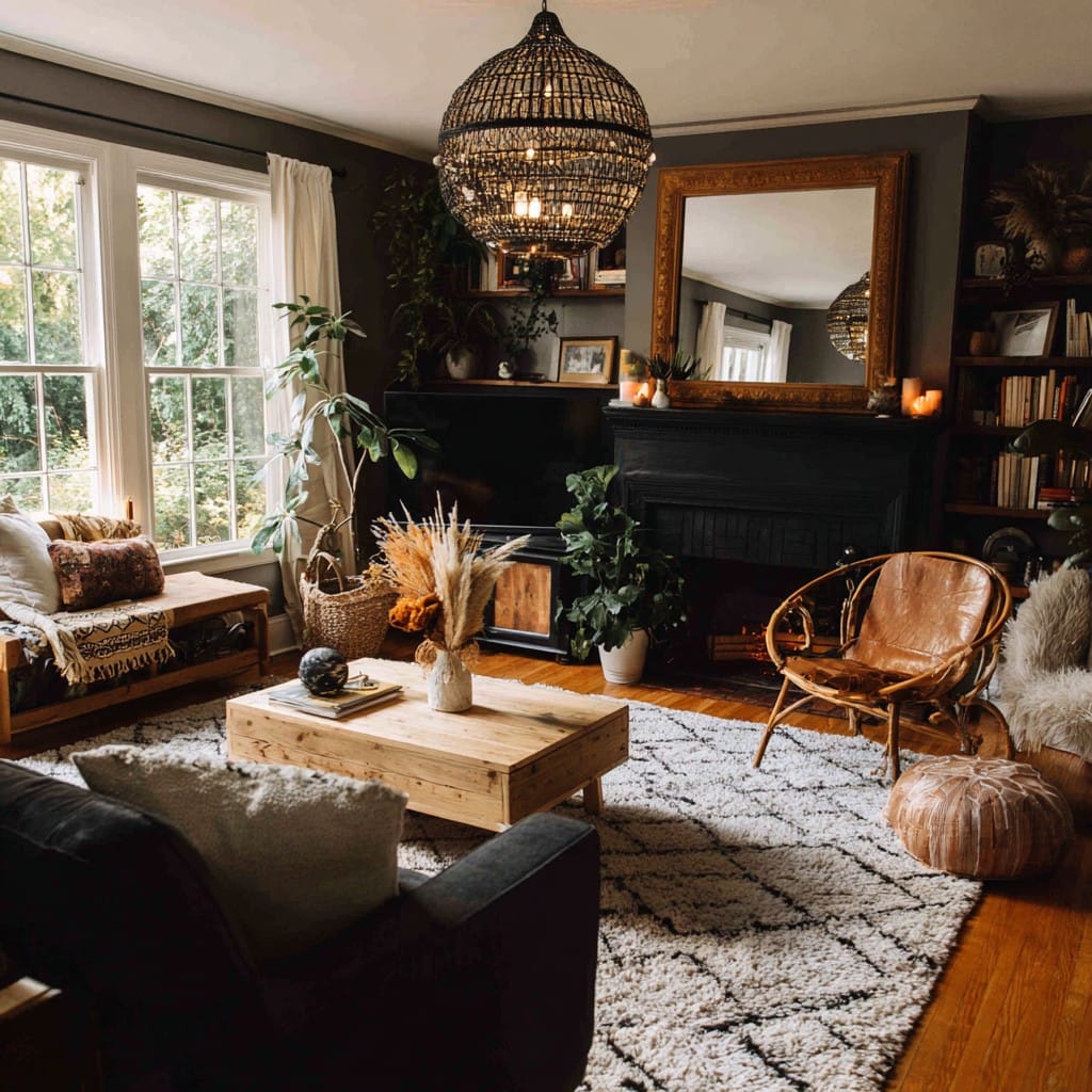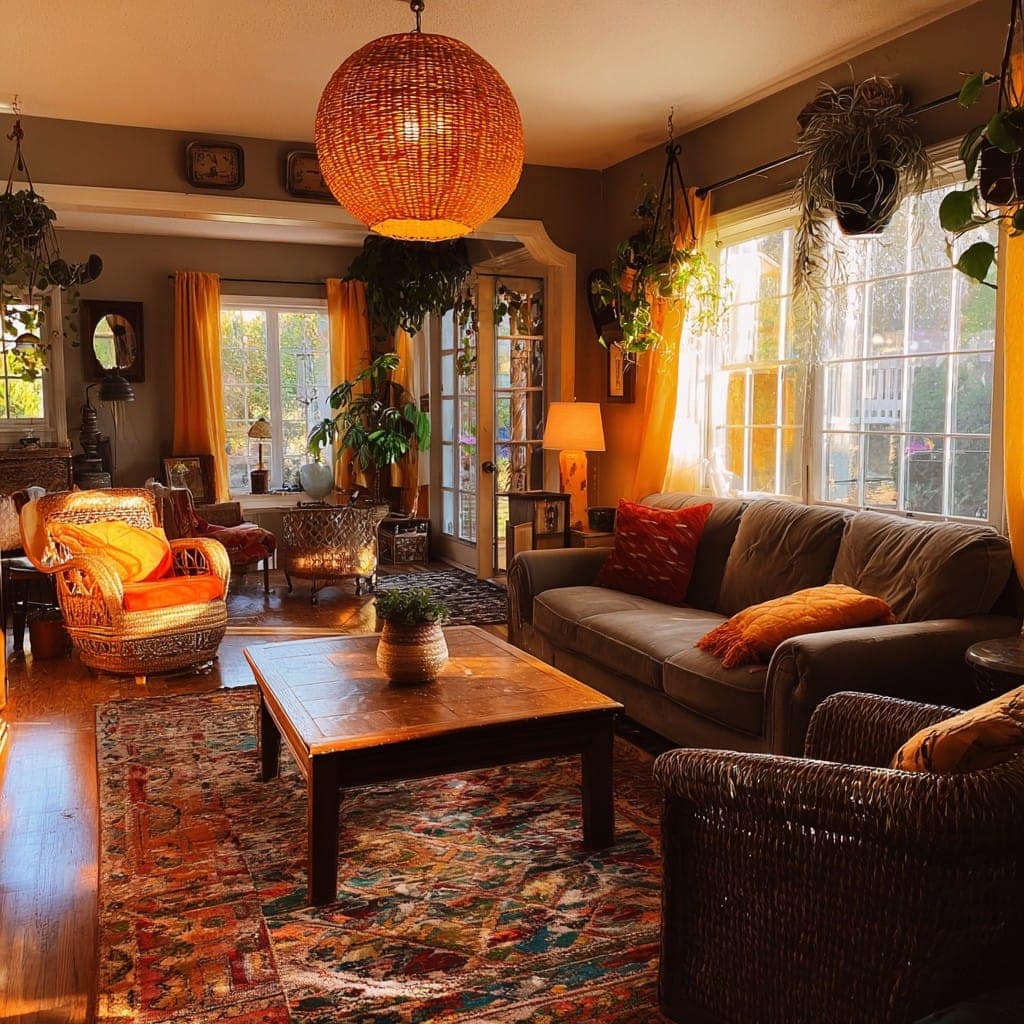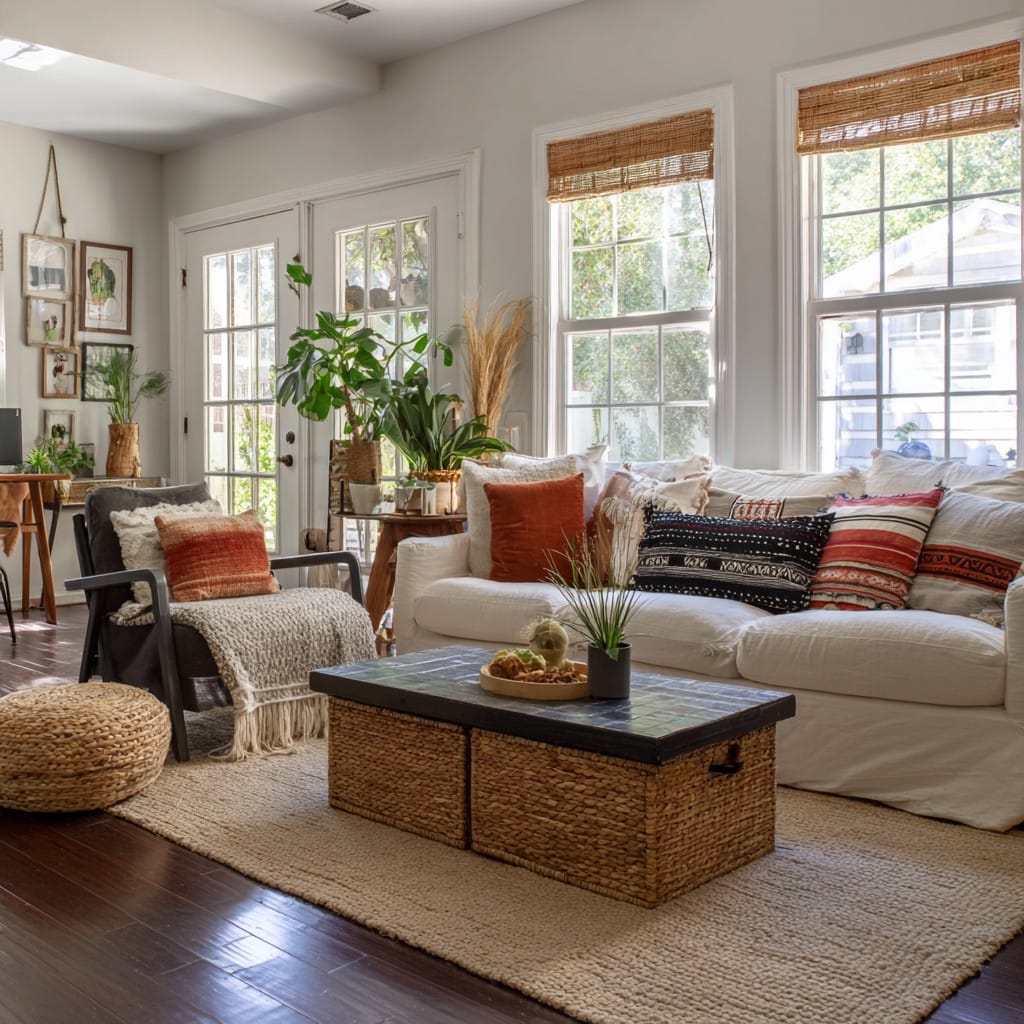 Blend mid-century clean lines with boho’s relaxed vibe and you won’t regret it. Think low-slung furniture, textured rugs, woven baskets, and plants. It’s stylish but not uptight.