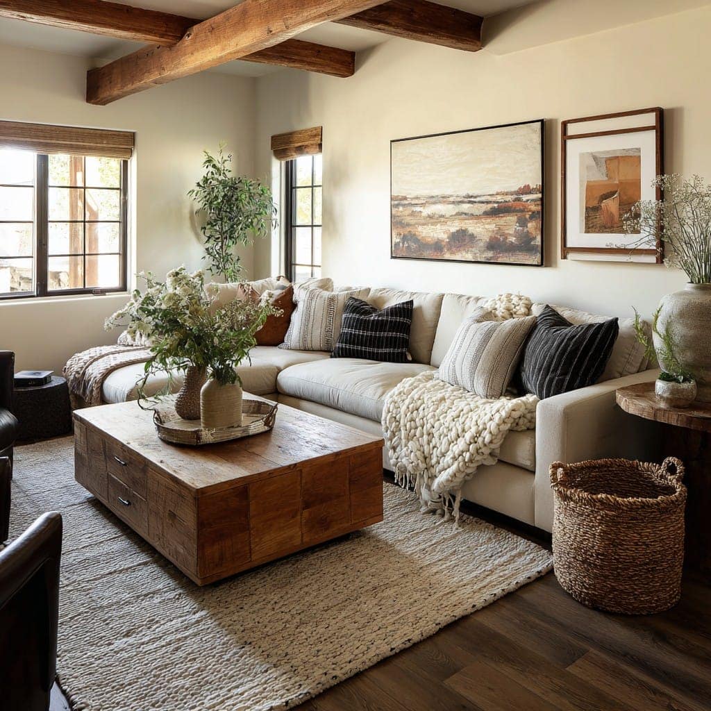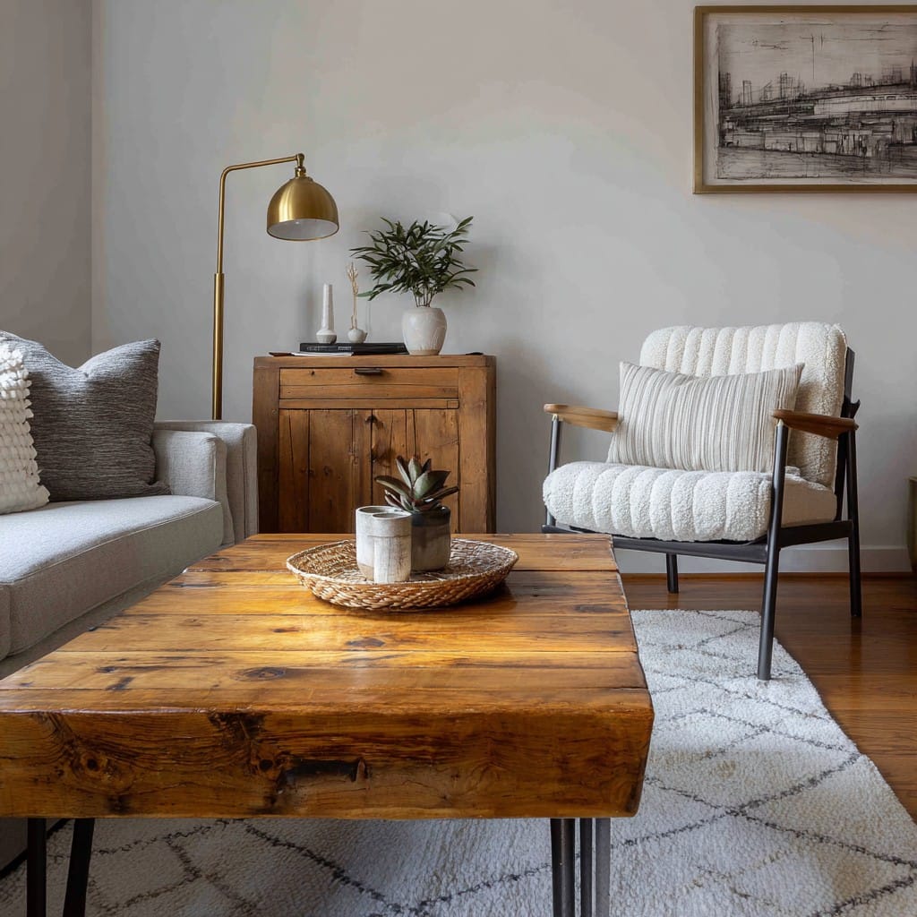 Shake things up by pairing raw wood with sleek metal in your living room. The contrast gives you a grounded but modern feel, and it doesn’t look forced.