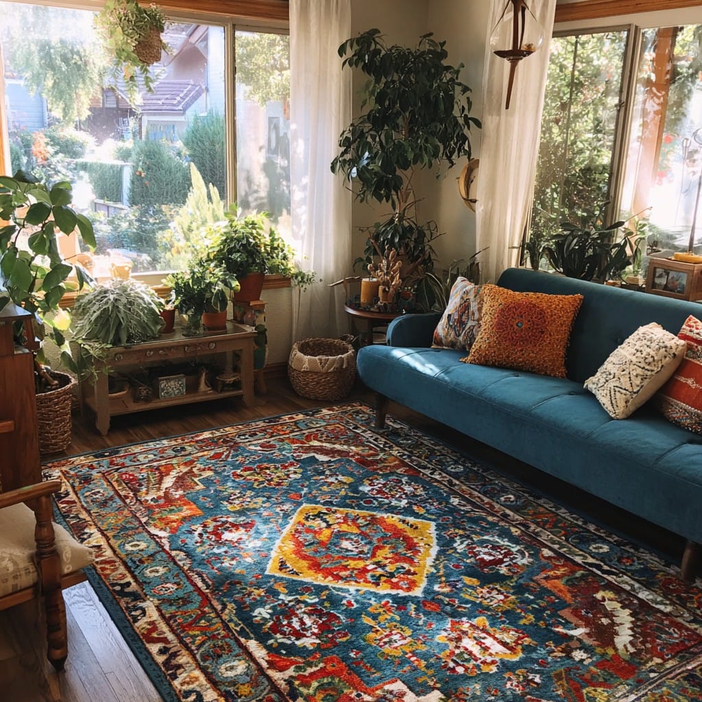 Drop a bold patterned rug on the floor and suddenly your living room isn’t boring anymore. It catches the eye and stops the space from feeling flat.