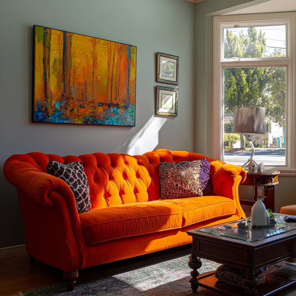 Drop an orange sofa in your living room and the whole place wakes up. It’s bold, grabs your eye, and doesn’t ask for approval.