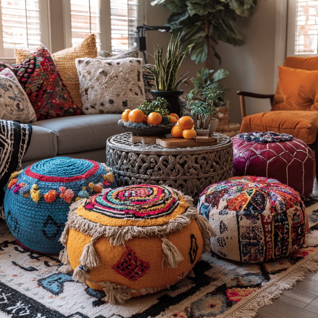 Toss a Moroccan pouf into your living room and suddenly you’ve got something that’s both useful and kind of a conversation starter. Maybe you’ll kick your feet up, maybe someone grabs it as an extra seat, or you throw a tray on top and call it a table for the night.