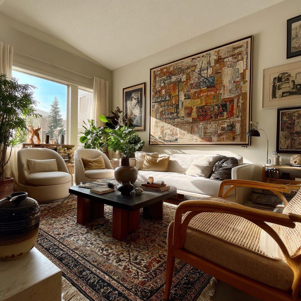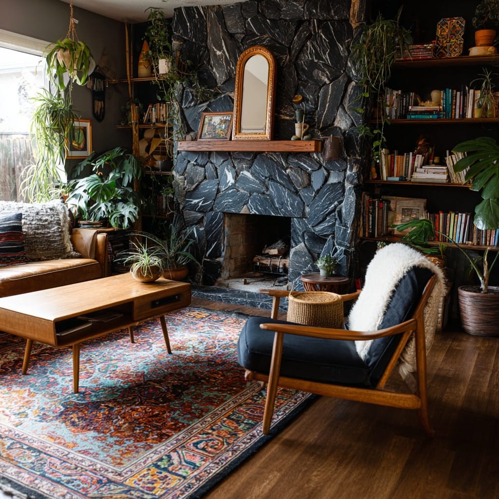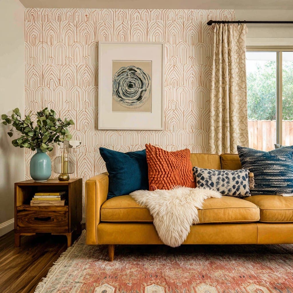 Add natural textures like rattan or jute with mid-century chairs. The contrast gives warmth and keeps the room functional. You end up with something that feels both retro and chill.