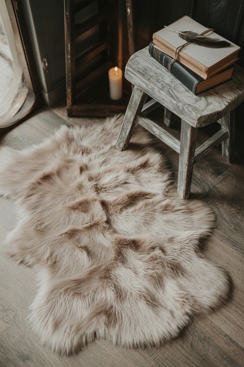 Faux fur rugs bring a dark woodland vibe to any witchy space. These luxurious pieces feel amazing in bedrooms or meditation corners where you want something soft and a little wild.