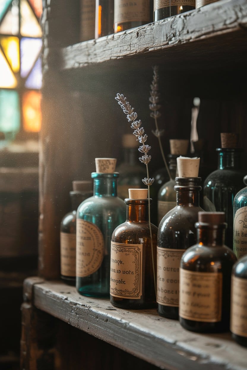 Scouring thrift stores and antique shops for vintage bottles gives your space that dark academic witch energy. There are always hidden gems just waiting to be turned into mystical displays.
